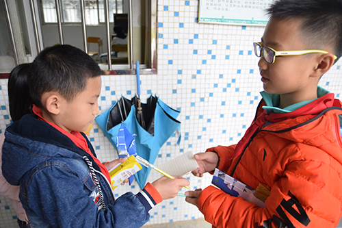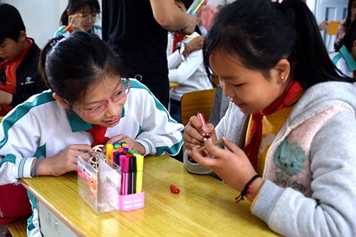 活動(dòng)中,兩校隊(duì)員結(jié)成“手拉手好朋友”,開展“四個(gè)一”活動(dòng),即交一個(gè)“手拉手”好朋友、寫一封“手拉手”交友信、給小伙伴送上一份禮物、向小伙伴學(xué)一種新知識(shí)新本領(lǐng)。以“我與小伙伴一起學(xué)”為主題,組織隊(duì)員們共同參加體驗(yàn)活動(dòng)。另外,我校李曉琳、陳雪玲、劉琰三位老師還分別為隊(duì)員們執(zhí)教了一節(jié)風(fēng)趣的藝術(shù)課。