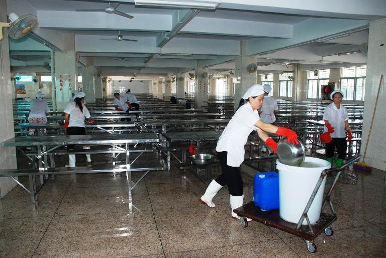 3、發(fā)動(dòng)全校生活老師和食堂員工分別對(duì)學(xué)生宿舍和餐廳用稀釋的次氯酸納原液進(jìn)行全面擦洗消毒。