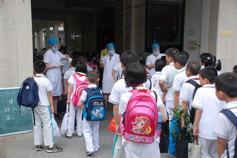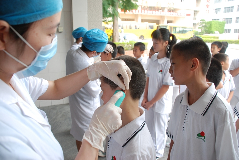 8、國慶長假結(jié)束后,組織校醫(yī)務(wù)室醫(yī)生對(duì)返校學(xué)生進(jìn)行體體溫測(cè)量。