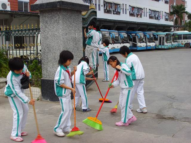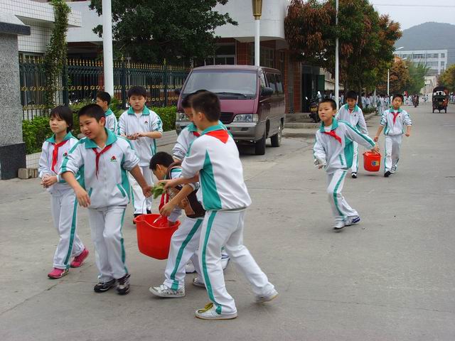 三月十五日,四年級(jí)其它班級(jí)也陸續(xù)行動(dòng),校園里,校園外到處都活躍著同學(xué)們勞動(dòng)的身影,你看,同學(xué)們正在學(xué)校的體育館里拖地呢,校園外的馬路上,大家都揮舞著掃帚,忙的滿(mǎn)頭大汗。還有不少同學(xué)來(lái)來(lái)往往的提水,倒垃圾,大家萬(wàn)眾一心只為把校園打扮的更加美麗。
