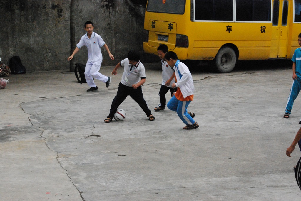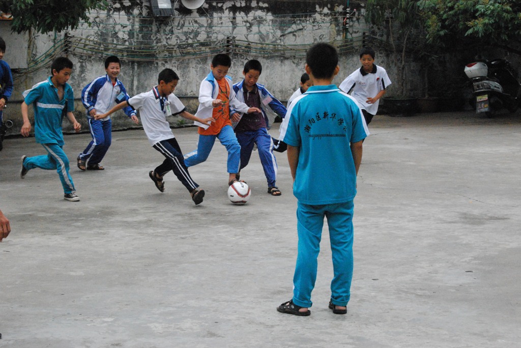 棉西新華學校的學生從學前班到初二年級,主要來自外來農民工的子女,家庭經(jīng)濟條件普遍較差,父母整天忙于在外打工,缺乏對子女的關愛。學校自身師資缺乏,教學條件落后,甚至沒有像樣的黑板、彩色粉筆,桌椅破舊,更別說多媒體教學;學生幾乎沒有什么體育活動,甚至在這次活動之前,連一個籃球框都沒有。