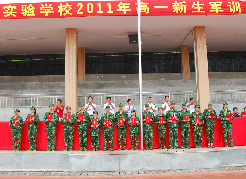 參加閉營(yíng)儀式的有學(xué)校創(chuàng)辦人鄭立平董事長(zhǎng)、學(xué)校各行政領(lǐng)導(dǎo)、部隊(duì)領(lǐng)導(dǎo)以及全體高一年級(jí)教師。閉營(yíng)儀式上各班學(xué)生進(jìn)行了列隊(duì)表演,他們嚴(yán)謹(jǐn)認(rèn)真的態(tài)度都顯示了軍人不怕苦不怕累的精神。會(huì)上,學(xué)生代表的發(fā)言表達(dá)了對(duì)教官、學(xué)校的感謝、對(duì)軍訓(xùn)的體會(huì)和對(duì)以后學(xué)習(xí)的信心。學(xué)校以及部隊(duì)領(lǐng)導(dǎo)的發(fā)言不僅對(duì)學(xué)生在軍訓(xùn)期間的表現(xiàn)給予了高度肯定,而且更進(jìn)一步的激發(fā)了學(xué)生的的斗志。最后伴隨著嘹亮的國(guó)歌,學(xué)校對(duì)在軍訓(xùn)期間具有突出表現(xiàn)的學(xué)生和班集體列隊(duì)表演進(jìn)行了表彰。學(xué)生在一片歡笑聲中結(jié)束了辛苦但意義非凡的軍訓(xùn)生活。
