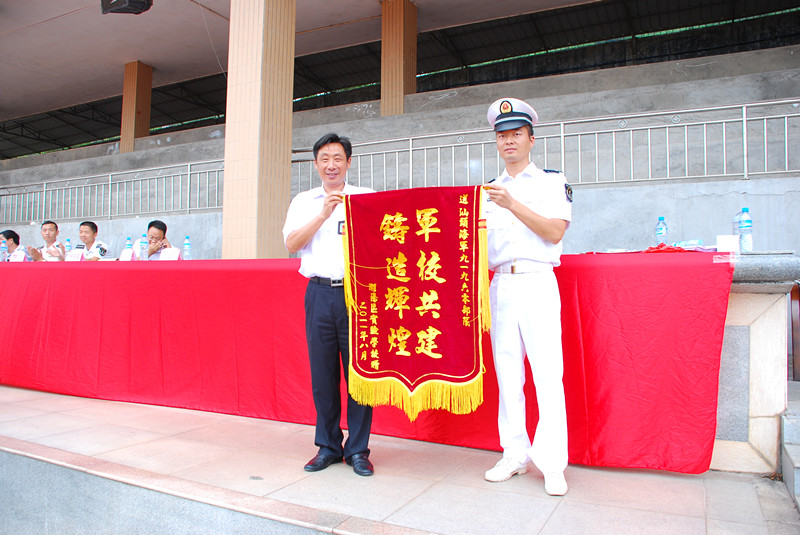 張校長(zhǎng)為部隊(duì)官兵贈(zèng)送錦旗