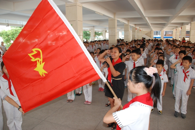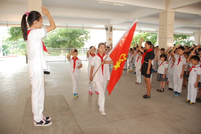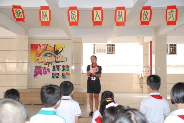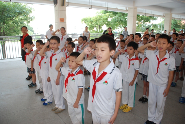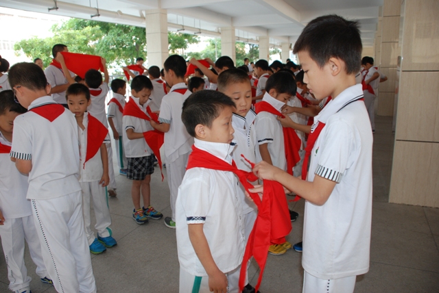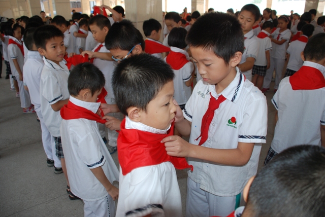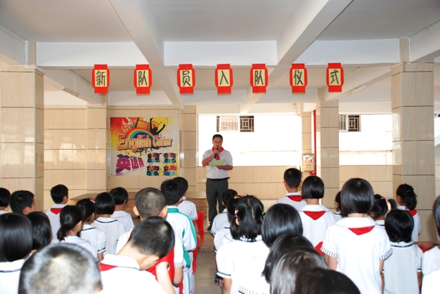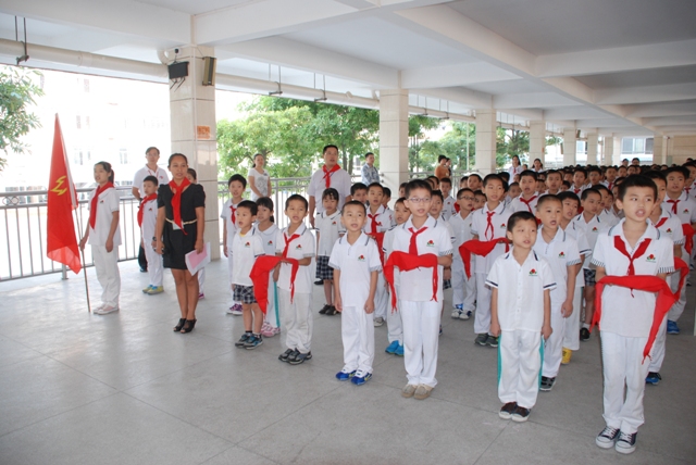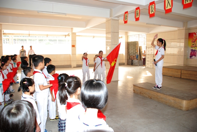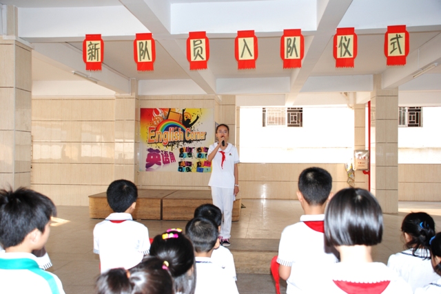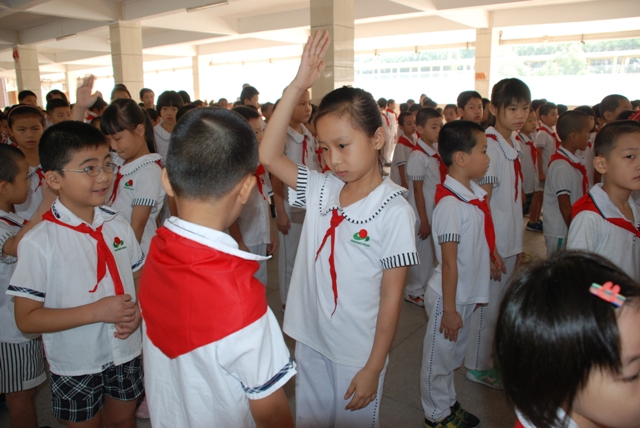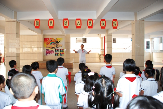 2012年10月11日上午,我校在風(fēng)雨操場(chǎng)舉行了二年級(jí)小學(xué)生入隊(duì)儀式,入隊(duì)儀式上,四年級(jí)的老隊(duì)員為二年級(jí)的200名新入隊(duì)的同學(xué)佩戴上了鮮艷的紅領(lǐng)巾,使他們成為了一名光榮的中國(guó)少年先鋒隊(duì)隊(duì)員。在大隊(duì)輔導(dǎo)員胡丹老師的帶領(lǐng)下,新隊(duì)員們?cè)陉?duì)旗下莊嚴(yán)宣誓。新隊(duì)員代表在發(fā)言中表示要好好學(xué)習(xí),成為一名優(yōu)秀的小學(xué)生,號(hào)召其他同學(xué)也以少先隊(duì)員的標(biāo)準(zhǔn)來(lái)要求自己,爭(zhēng)取盡早加入中國(guó)少年先鋒隊(duì)�;顒�(dòng)的最后,全體新老隊(duì)員鄭重地舉行了少先隊(duì)呼號(hào)儀式。 通過(guò)莊嚴(yán)隆重的入隊(duì)儀式,在二年級(jí)小朋友幼小的心靈上,播下了“先鋒”的種子,加深了對(duì)少先隊(duì)組織的認(rèn)識(shí),引導(dǎo)隊(duì)員們培養(yǎng)好習(xí)慣,爭(zhēng)做講文明、守紀(jì)律、愛(ài)學(xué)習(xí)的好兒童。