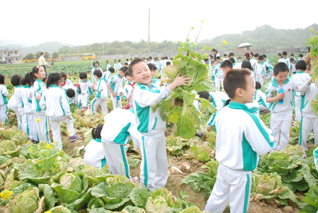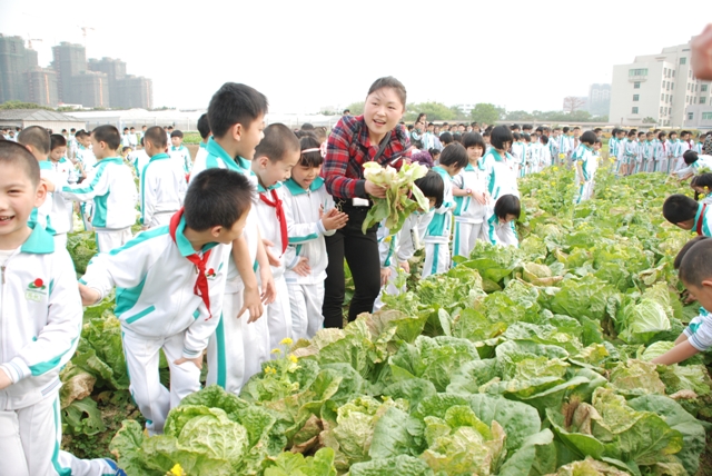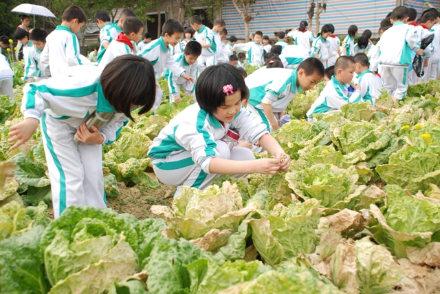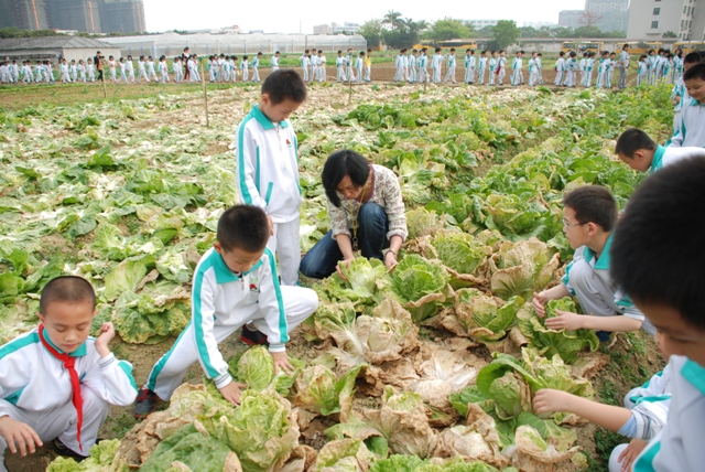 學生們通過參觀校辦農(nóng)場了解到我們學校食堂的蔬菜、瓜果、豬肉、魚蝦等食材都是由學校自辦的農(nóng)場供應,全部都是綠色無公害食品,確保了師生食品安全;通過與農(nóng)場工作的叔叔、阿姨交談,學生了解到叔叔、阿姨們每天都是凌晨兩、三點就起床摘菜,為的是保證每天準時供應學校各個部門的食堂,非常辛苦;在烈日下,孩子們開始為白菜摘除枯葉,干得熱火朝天,也親身體驗到了這些食物的來之不易,紛紛表示今后就餐時要做到不浪費每一份飯菜。