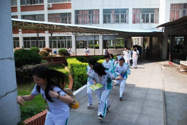 安全疏散演練分2個階段進行,首先是宿舍安全疏散演練,然后是教學(xué)樓安全疏散演練,隨著一聲急促的警報聲,地震應(yīng)急疏散演練活動正式開始,各班學(xué)生在老師們的指揮下,按照指定路線,在樓層指導(dǎo)老師的指揮下,快速、有序地轉(zhuǎn)移到了開闊安全的操場和空曠的場地,并迅速整隊、清點人數(shù),全部3000名學(xué)生從教室撤離到校園操場用了3分鐘。