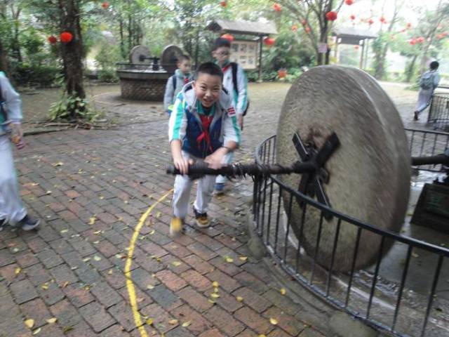一進(jìn)山莊,孩子們就和春天撞了個(gè)滿懷。他們驚奇地去欣賞每一片新綠,細(xì)心地去呵護(hù)每一株幼苗。同學(xué)們?nèi)缤禾斓男?shù)一樣充滿著生機(jī),真切感受人與自然的和諧。在老師的指導(dǎo)下,同學(xué)們親自體驗(yàn)推石碾、踩水車(chē),認(rèn)識(shí)昔日潮汕農(nóng)俗用具物品,感受古代勞動(dòng)人民的智慧。山莊里的農(nóng)樂(lè)園、滑草場(chǎng),不僅讓孩子們?cè)鲩L(zhǎng)了知識(shí),更灑下了串串歡笑。
