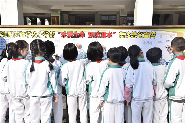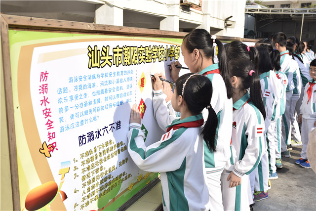 為進一步增強學生的安全意識,提高學校安全管理水平,避免溺水事故的發(fā)生,潮陽實驗學校小學部通過夕會、班會、黑板報、宣傳欄、廣播站等多種形式對學生進行防溺水安全宣傳教育活動。4月13日早上八點,小學部舉行了升旗儀式暨“珍愛生命•預(yù)防溺水”為主題的宣誓簽名活動。
