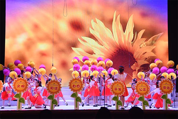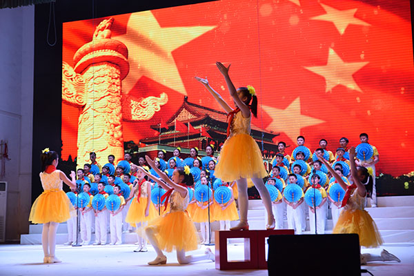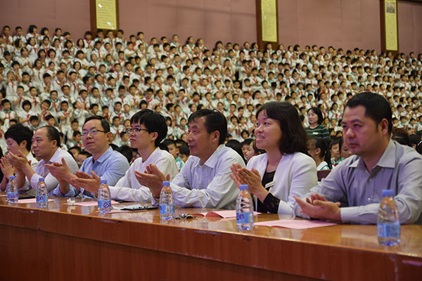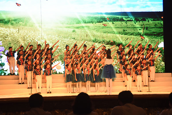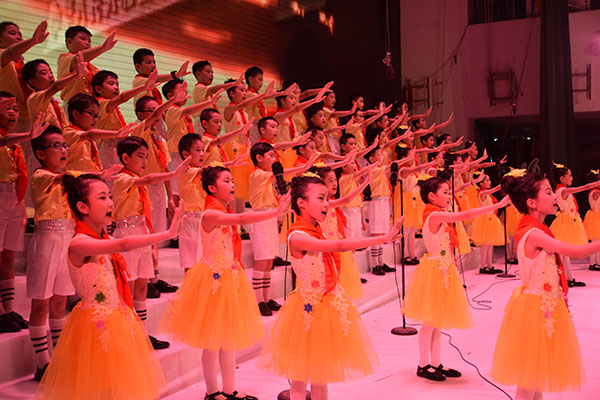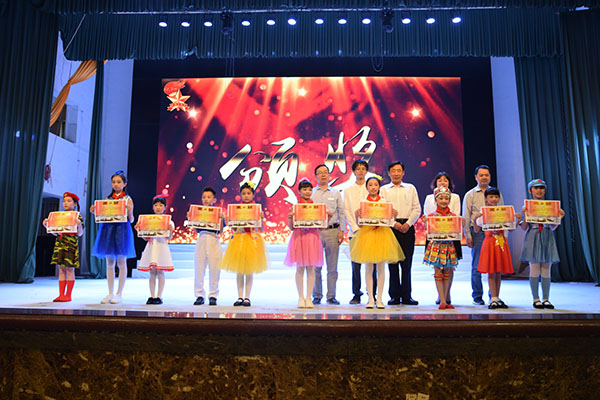 為弘揚(yáng)愛國(guó)精神,重溫紅色經(jīng)典,豐富校園生活,增強(qiáng)班級(jí)凝聚力,汕頭市潮陽實(shí)驗(yàn)學(xué)校小學(xué)部于2018年10月19日下午兩點(diǎn),在學(xué)校體育館隆重舉行第八屆歌詠比賽。學(xué)校張復(fù)昌校長(zhǎng)、學(xué)校董事會(huì)鄭益烽董事、學(xué)部鄒丹校長(zhǎng)、秦世進(jìn)副校長(zhǎng)、王修穩(wěn)副校長(zhǎng),兩處主任們,以及各位音樂老師組成的評(píng)委團(tuán)隊(duì)出席了本次比賽。