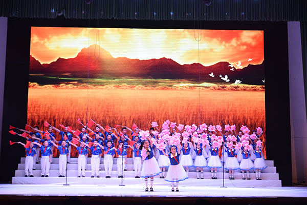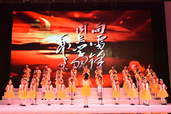 四位小主持人姿態(tài)大方,稚嫩清亮卻不失氣勢(shì)的嗓音,拉開了這次紅色盛典的帷幕。本次比賽共有十個(gè)班級(jí)參賽,每個(gè)班級(jí)都有兩首參賽曲目。他們用獨(dú)具匠心、昂揚(yáng)向上的歌聲,唱出了新時(shí)代的好隊(duì)員對(duì)黨和祖國(guó)的深深情誼和熱愛,歌頌了中華民族自強(qiáng)不息的精神和黨攻堅(jiān)克難、勇往直前的領(lǐng)頭作用,贊揚(yáng)了蓬勃向上、百花齊放的新時(shí)代!