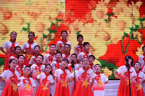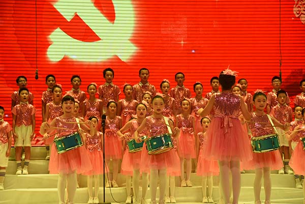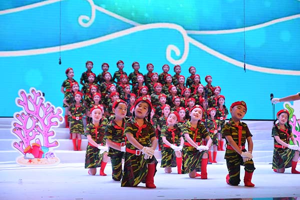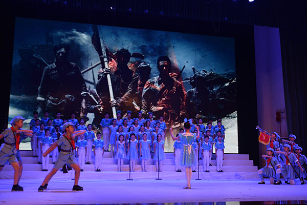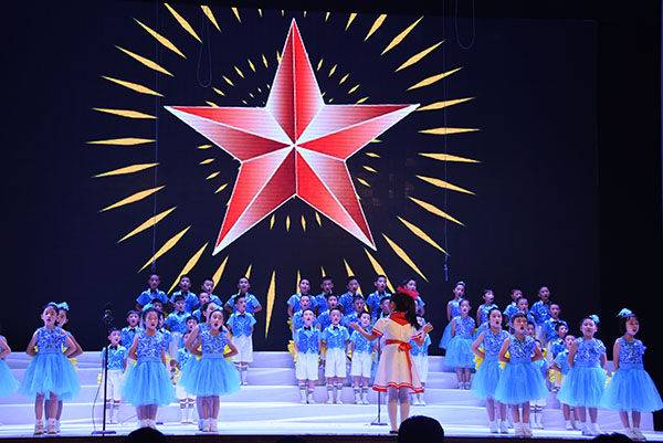 216中隊(duì)的小朋友們也不甘示弱,歡快明麗的《共產(chǎn)主義兒童團(tuán)團(tuán)歌》和《小螺號(hào)》唱出了他們小小身體里大大的能量,全場(chǎng)觀眾也為可愛的他們報(bào)以陣陣熱烈的掌聲。