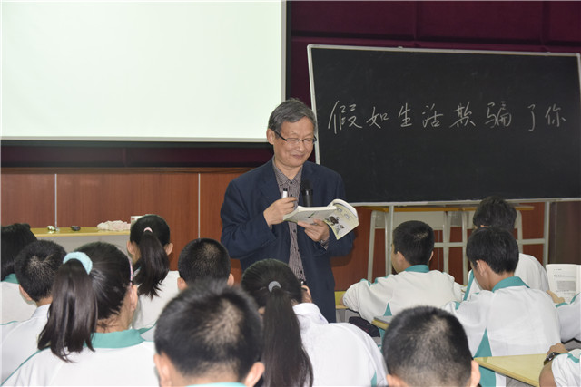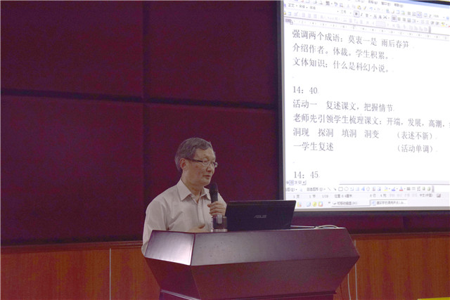 31日上午余老師上了《假如生活欺騙了你》、《春酒》和《孔乙己》三節(jié)精彩的示范課,余老師的語言簡潔優(yōu)美,體現(xiàn)出濃厚的書香氣息與儒雅氣質(zhì),使聽課老師無不欽佩;示范課學(xué)生活動充分,課堂積累豐厚,讀寫結(jié)合,當(dāng)堂落實(shí),效果極佳。接著余老師又進(jìn)行了“在教學(xué)中體現(xiàn)‘板塊式’思路的魅力”的微型講座,重點(diǎn)講解如何從不同角度來設(shè)計(jì)“板塊式”教學(xué),角度多樣,方法獨(dú)特,具體明晰,實(shí)用性極強(qiáng)。下午余老師進(jìn)行了“談中學(xué)語文‘文學(xué)作品’的教學(xué)”的專題講座,他運(yùn)用了大量的課例,令在座老師對教學(xué)中存在的困惑茅塞頓開。
