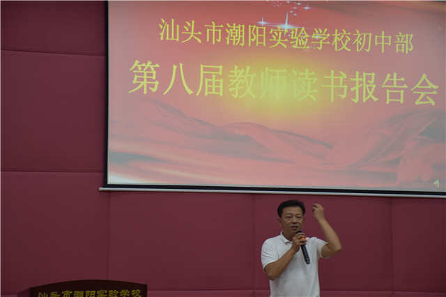 《師說》有云:“師者,所以傳道受業(yè)解惑也”。為響應習總書記做“四有教師”的號召,提高教師隊伍的人文素養(yǎng),培養(yǎng)教師的閱讀習慣,提高教師“傳道受業(yè)解惑”的能力,潮陽實驗學校初中部近年來致力于開展教師讀書活動,并于2017年8月28日上午在六樓多功能廳召開了第八屆教師讀書報告會,對讀書活動的開展情況進行總結和匯報。